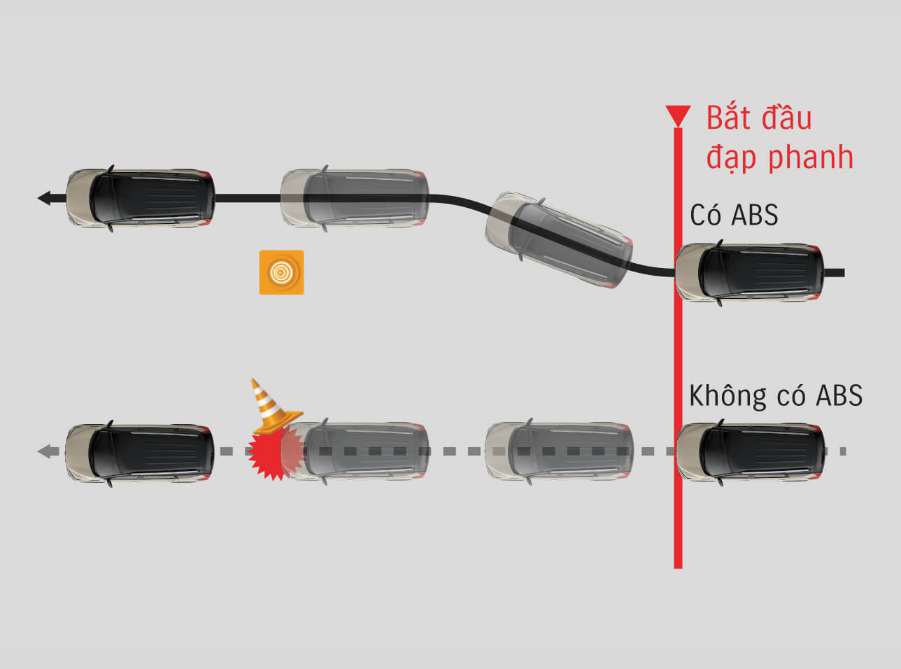 Trong tình huống phanh khẩn cấp, ABS giúp lốp không bị bó cứng và giúp duy trì khả năng kiểm soát. EBD giúp rút ngắn quãng đường phanh bằng cách phân bổ lực tới bánh xe một cách tối ưu tùy theo tải trọng.