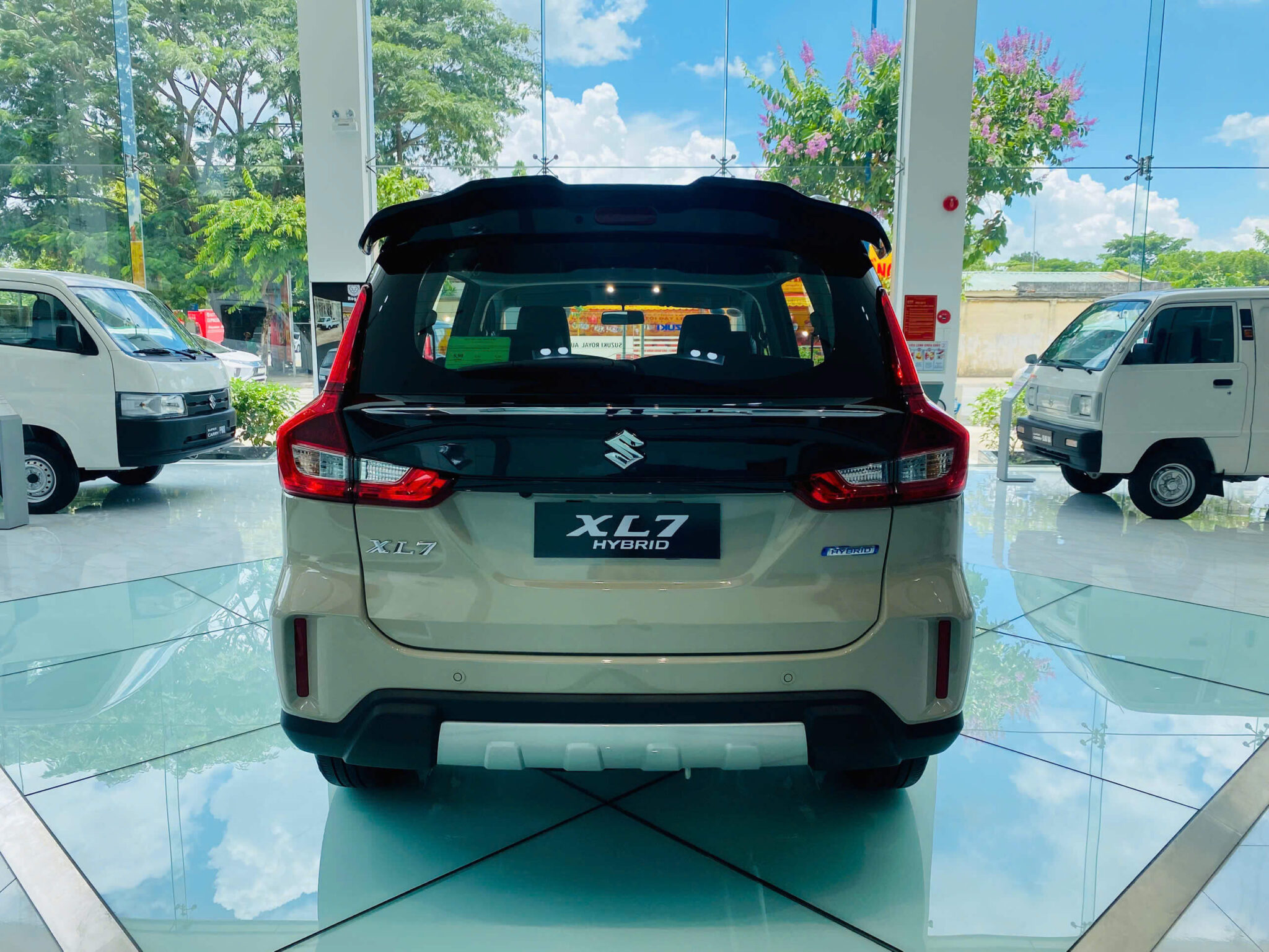 Kiểu dáng đuôi xe XL7 Hybrid thể hiện sự vuông vức đặc trưng của dòng SUV, nhưng vẫn giữ được nét mềm mại với các chi tiết bo tròn và đường gân dập nổi.