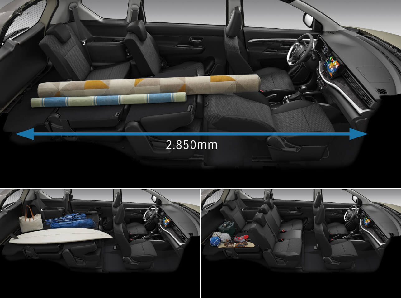 Nội thất rộng rãi Với kích thước tổng thể tăng hơn so với Ertiga, Suzuki XL7 Hybrid – 7 chỗ ngồi đáp ứng mọi nhu cầu của người sử dụng, từ cá nhân, gia đình đến các hoạt động thương mại.