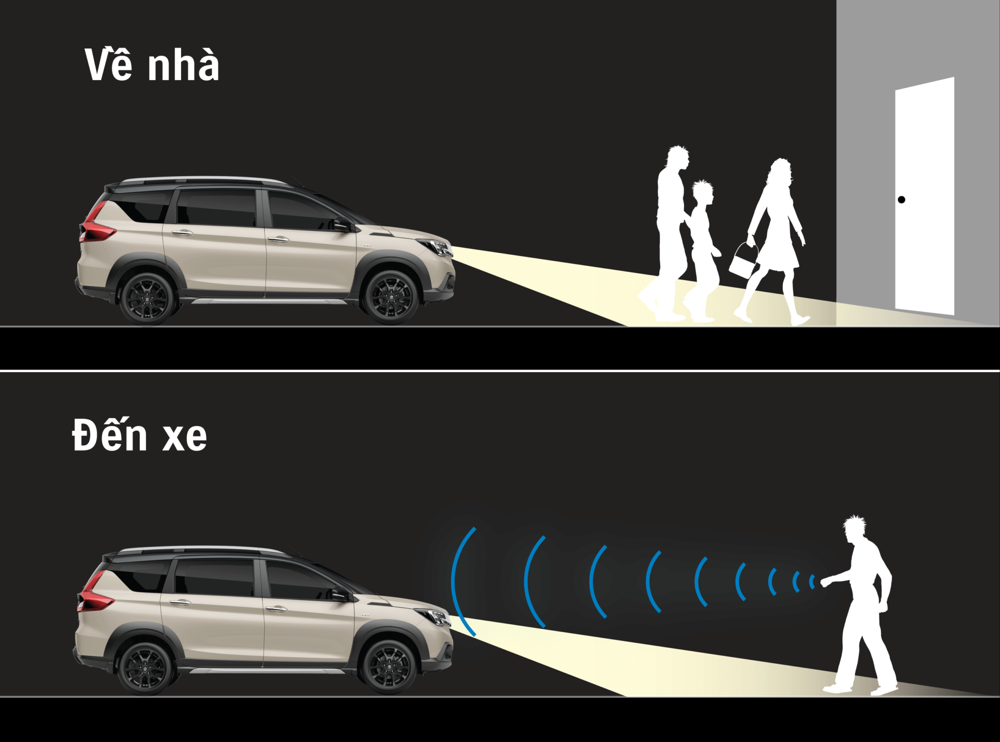 Hai chế độ làm việc: Đèn “Về nhà” sáng 10 giây sau khi rời xe để hỗ trợ vào nhà an toàn hơn trong bóng tối, đèn “Đến xe” giúp dễ dàng tìm xe và soi đường.