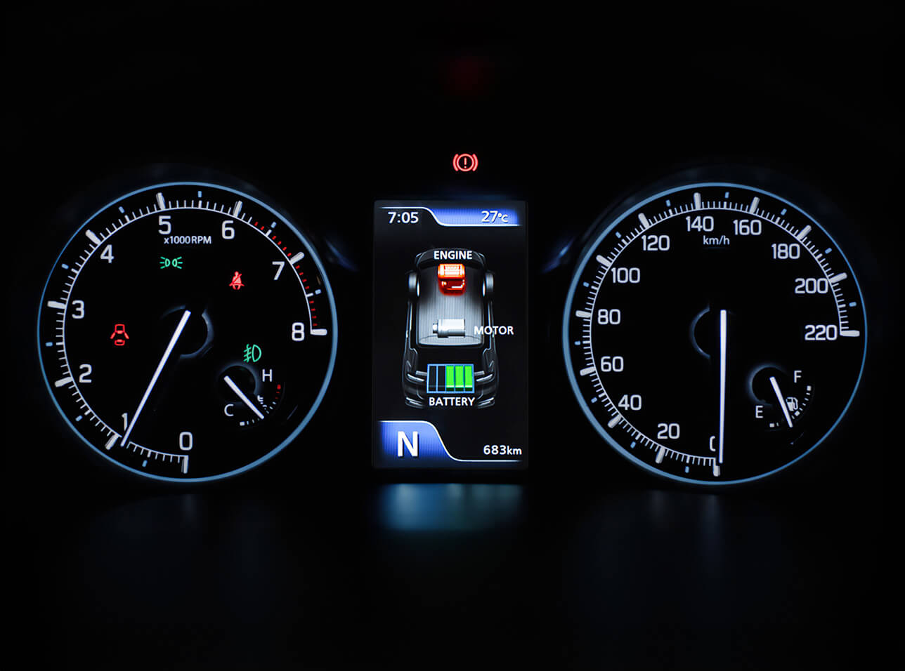 Hiển thị đa thông tin với giao diện trực quan về chế độ hoạt động của hệ thống Hybrid, giúp người lái dễ dàng theo dõi tình trạng vận hành của xe.
