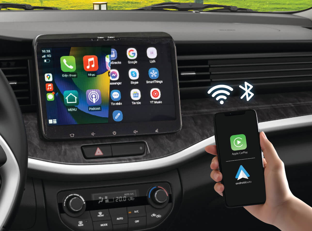 Màn hình cảm ứng 10″ hỗ trợ kết nối điện thoại thông minh với Apple Carplay và Android Auto không dây, mang đến trải nghiệm giải trí chân thực và sống động.